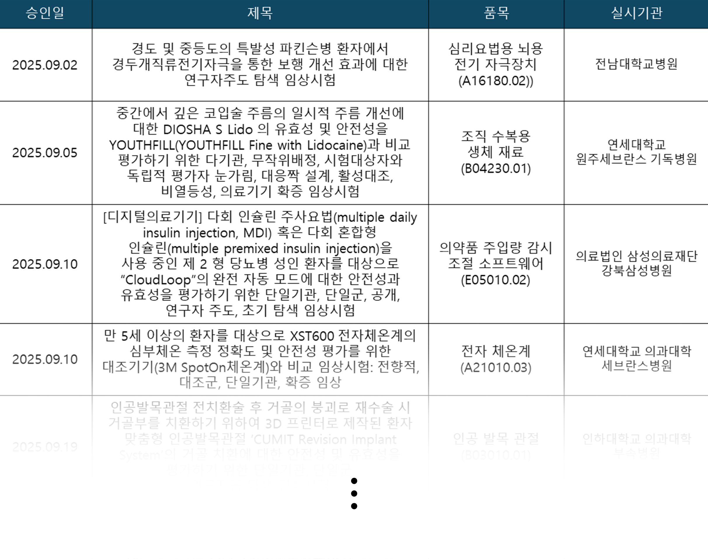 ✔️ 2025.09 의료기기 임상시험 승인 현황