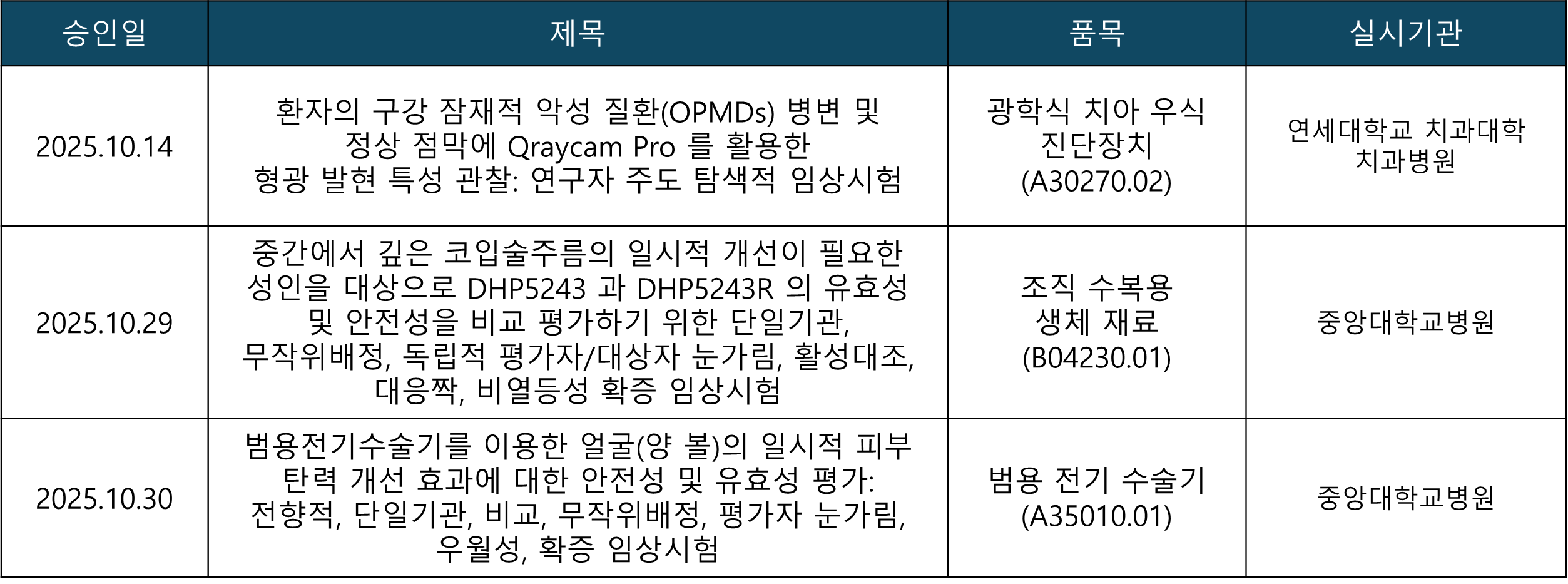 ✔️ 2025.10 의료기기 임상시험 승인 현황