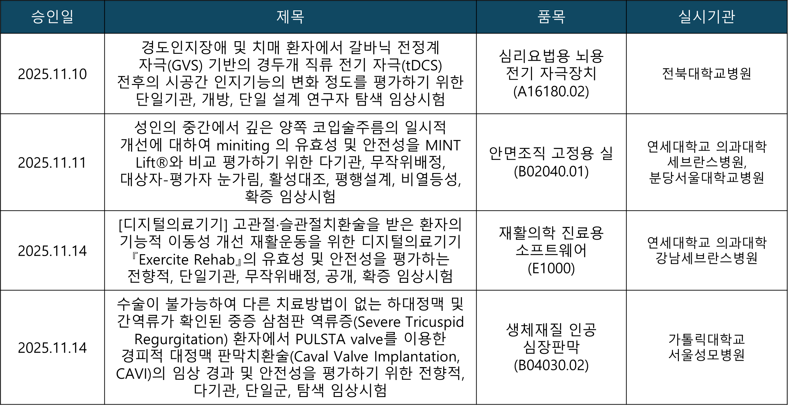 ✔️ 2025.11 의료기기 임상시험 승인 현황